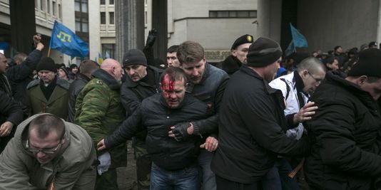 De brefs affrontements ont éclaté dans l’après-midi, alors que le chef du parlement local excluait tout débat sur une éventuelle sécession. Les pro-Russie réclament en effet la tenue d’un référendum sur le statut de la Crimée, où les tensions séparatistes se sont accrues depuis la destitution de Viktor Ianoukovitch.