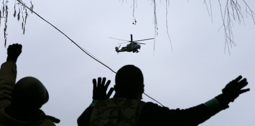 Des hélicoptères survolent Slaviansk à basse altitude