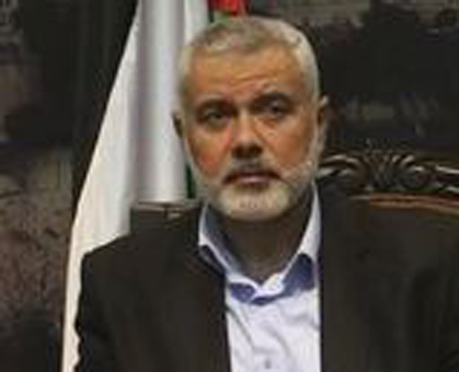 Le premier ministre de Gaza, et dirigeant du Hamas, Ismaël Haniyeh (à droite) et Azzam Al-Ahmad, à la tête de la délégation de l’OLP, le 22 avril à Gaza.