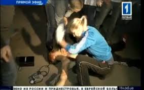 Plusieurs centaines de prorusses portant des casques et armés de matraques ont attaqué un défilé de partisans de Kiev, qui étaient environ 1 500, dans lecentre-ville. La police a tenté de s’interposer, mais les échauffourées ont fait une dizaine de blessés dans les deux camps, dont un était allongé au sol, inconscient. Selon un journaliste présent, les forces anti-émeutes auraient finalement réussi à séparer les deux camps.