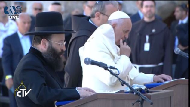 Francis embeds a note in the Western Wall, calls for greater interfaith dialogue atop Temple mount; roads closed throughout capital as ‘pilgrimage of prayer’ Middle East tour enters final leg.