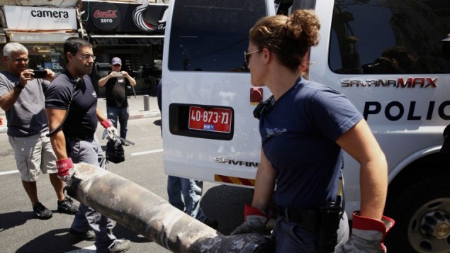 Five rockets were shot down over Tel Aviv by the Iron Dome anti-missile system, the army said.