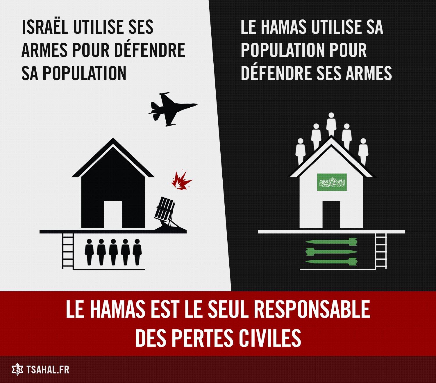 A expliqué le premier ministre israélien. Selon ce dernier, le Hamas est «le seul à blâmer pour toutes les victimes civiles de Gaza car il place des roquettes et des postes de commandes dans des maisons, des hôpitaux, près des crèches et des mosquées». «Nous sommes désolés pour toutes les morts accidentelles de civils mais c’est le Hamas qui en porte l’entière responsabilité», répète-t-il.