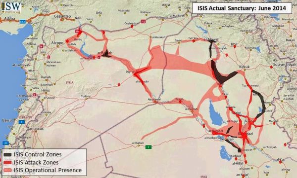 Map: 06.10.14 Mosul falls incontrol of ISIS Insitute For the Study of War Map representing areas of control, attack, and operational presence by ISIS after the takeover of Mosul. http://iswiraq.blogspot.com/2014/06/updated-map-of-isis-sanctuaries-in-iraq.htm