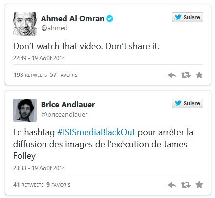 Sur Twitter, nombreux sont ceux qui appellent ce mercredi à ne pas regarder ni partager la vidéo sur les réseaux sociaux pour respecter la mémoire de James Foley. Selon eux, reprendre les vidéos des djihadistes, cela à jouer le jeu de l’Etat islamique. Ils s’expriment notamment sous le hashtag #ISISmediaBlackOut.