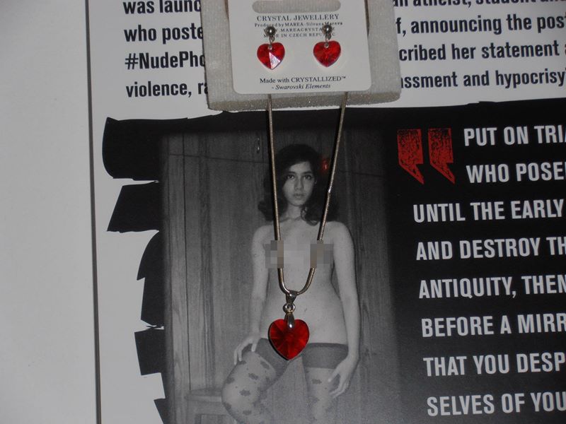 Aliaa Magda Elmahdy posts photo to Facebook; Arab media avoid publishing since words ‘there is no God but Allah’ are printed on banner.
