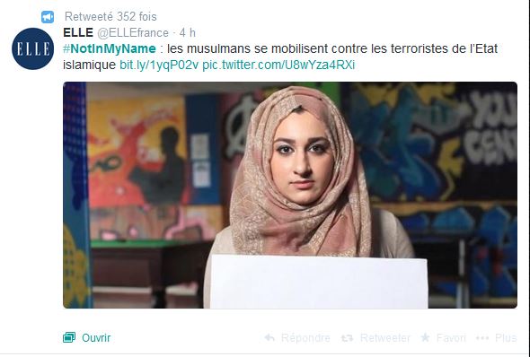 « Not in my name ». Pas en mon nom. Voilà le mot-clé qui défie l’Etat islamique sur Twitter. Lancée par la fondation britannique Active Change, la campagne appelle tous les musulmans à dire pourquoi ils ne se reconnaissent pas dans l’Etat islamique. L’un d’eux déclare sur Twitter : « L’Islam n’est pas une religion de violence, je ne laisserai pas ces terroristes ternir ma religion. »