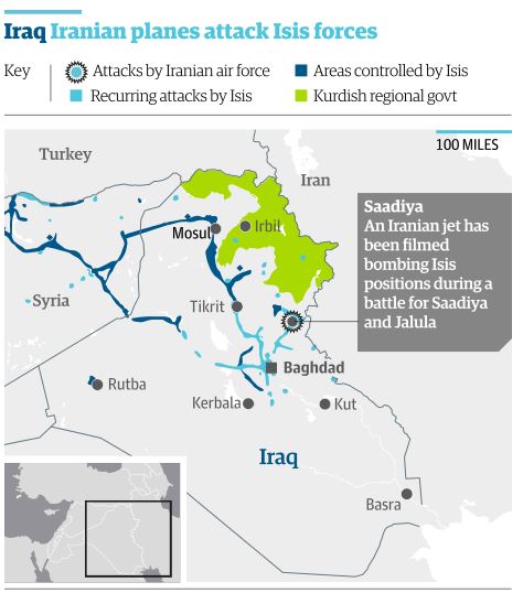 Iranian forces have been active on the ground in Iraq assisting Shia militia and Baghdad government units but it is the first time the United States has confirmed the Iranian air force is conducting strikes against Isis.