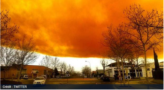 L’absence de vent ce jeudi est une très mauvaise nouvelle pour la ville d’Igualada. Le nuage orange ne va pas se dissiper et va faire du « sur-place », jusqu’à vendredi midi. A partir de la mi-journée de vendredi, un vent d’ouest permettra au nuage d’être repoussé vers les côtes. Seul bémol, en se dirigeant vers les côtes, il passera sur Barcelone, polluant également cette ville d’ un million et demi d’habitants. En raison de cette situation météo, aucun risque de propagation n’est pour le moment à craindre pour la France au cours des prochains jours.
