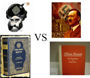 Many are started to compare Hitler’s Manifesto from over 80 years ago, “Mein Kampf”, to that “Islamic Holy Book” to Muslims, the Qu’ran. Commenters have noted the remarkable similarities between the two, and indeed, the resemblances are more than skin deep and are worth examining in more detail. A closer look at the facts reveals that Islam (not ‘Islamism’) and Nazism are two kindred ideologies with many, many commonalities.