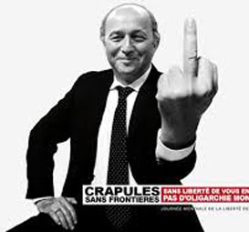 Ci-dessous des extraits de la presse iranienne en persan et en français ainsi que des photomontages glanés sur les réseaux sociaux, Twitter et Facebook, et sur le site de l’agence de presse officielle Fars, présentant Laurent Fabius sous les traits d’un vampire assoiffé de sang.