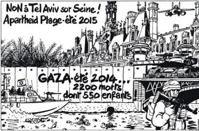 L’antisémitisme est-il, oui ou non, le véritable sujet en toile de fond de son dessin et de son texte s’opposant à l’organisation, par la Mairie de Paris, de la journée Tel-Aviv/seine ?