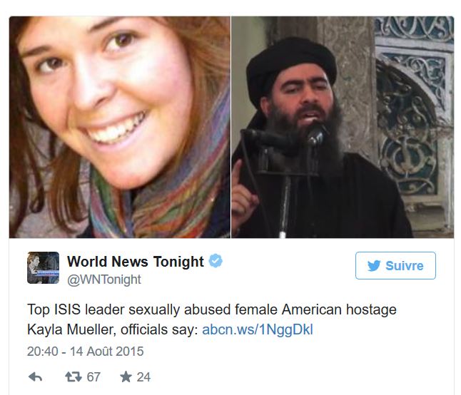 Selon des témoignages concordants, l’otage Kayla Mueller a été régulièrement violée par le chef de l’organisation Etat islamique, Abou Bakr al-Baghdadi. Elle aurait aussi été torturée dès le début de sa détention.