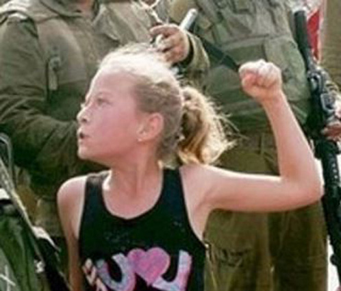 - Girl in pictures is believed to be Ahed Tamimi, whose parents Bassem and Nariman are Palestinian activists