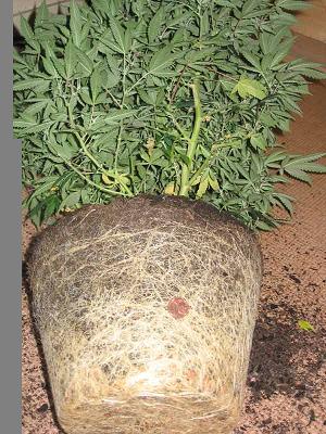 La dimension des pots que nous utilisons dépend du nombre de plantes que nous cultivons et du temps de croissance que nous  leurs donnerons. Ces facteurs sont liés les uns aux autres. Si nous avons un grand nombre de plantes à empoter, nous devrons utiliser de plus petits pots et donner aux plantes un temps de croissance plus court. Par exemple, si nous avons 16 plantes dans un mètre carré et que nous leur laissons une période de croissance en 5 et 9 jours, les plantes seront heureuses dans des pots de 5 litres. Si nous réduisons ce nombre à 10 plantes et leur laissons 14 jours de croissance, les plantes aurons besoin de pots de 7-11 litres. Ainsi, moins nous cultivons de plantes, plus grands devront être les pots et plus long devra être le temps de croissance. Le poids de la récolte finale sera approximativement le même dans les deux cas. La seule différence se trouvera au niveau du temps total pour arriver à la récolte. Quelqu’un qui choisit 16 plantes et la période de floraison courante de 8 semaines va prendre deux mois et cinq jours du début à la fin. Si vous prenez 10 plantes par contre, cela va prendre environ  deux mois et deux semaines. En d’autres termes, cela va prendre plus de temps pour obtenir la même récolte.  Les cultivateurs professionnels en particulier trouvent qu’il est important d’arriver à une récolte en prenant le moins de temps possible. C’est pourquoi ils mettent souvent 20 plantes dans un mètre carré et ne leur laissent que 1à 3 jours de croissance en fonction du médium qu’ils utilisent. De cette façon, ils peuvent récolter tous les deux mois s’ils utilisent une variété qui fait l’affaire en 8 semaines. En générale, les plantes à dominance plutôt Sativa, ont besoin d’une floraison plus longue que celles dont les gènes d’Indica dominent. Vous constaterez donc que vous pouvez être guidé dans votre choix aussi bien par l’origine des plantes que par la durée de floraison, mais aussi par les effets de la matière sèche à fumer. Si vous préférez un effet plus léger à une défonce plus lourde et corporelle, je vous conseille de choisir un croisement Sativa qui prend un peu plus de temps pour fleurir, disons 8-10 semaines. Même ainsi, il ne faut pas oublier que si vous cultivez à partir de graines, chaque plante est unique et il y en aura toujours  certaines à floraison précoce et à floraison tardive dans votre sélection. Si vous lisez quelque part que telle variété est ‘très uniforme’, cela signifie qu’il y aura peu de différence dans le temps de récolte entre les plantes adultes. Vous pouvez alors vous attendre à ce que 80% des plantes terminent leur floraison en même temps. Si une variété est moins uniforme, les différences seront plus importantes entre les plantes quant à leur durée de floraison. C’est un des autres facteurs importants auquel vous devrez être attentif en choisissant une variété particulière.