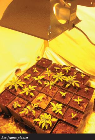On commence par la préparation du support de culture. De quoi avons-nous besoin pour cultiver? Tout d’abord de quelques pots avec de la terre, ce qui ne devrait pas poser de problème. Le mélange de terre est important et on a beaucoup de choix en la matière. Bien sûr, on peut trouver de la terre bon marché dans de nombreux centres de jardinage, mais elle contient peu de nutriments et n’est pas assez aérée, ce qui peut créer des difficultés pour des jardiniers débutants. Il est essentiel d’avoir de la terre aérée pour un bon développement des racines. Grâce à cela, la plante pousse en meilleure santé et avec plus de vigueur. On peut éviter bien des problèmes en ajoutant de la perlite à la terre. La perlite est composée de petites pierres blanches poreuses qui rendent le support de culture plus léger. Mais pourquoi vous  compliquer la vie alors que tout peut être si simple? Dans les growshops spécialisés, vous pouvez acheter la terre la mieux adaptée à votre culture. Une terre de haute qualité contient suffisamment de nourriture et de nutriments pour lancer la croissance de la plante. Dans bon nombre de cas, on y trouve de la perlite incorporée. Cela coûte évidemment un peu plus cher, mais la qualité de cette terre vaut bien la dépense, d’autant qu’elle rend superflu l’ajout de nutriments. La terre est évidemment très importante. C’est le fondement nécessaire aux racines et sur ce plan-là il ne faut pas lésiner. Un autre inconvénient de la terre bon marché est qu’elle devient vite dure et desséchée. Si vous n’avez vraiment pas de budget, le mieux est d’acheter de la terre pour rempotage. Ne prenez surtout pas des sacs de terreau pour fleurs en pots avec des petites fleurs imprimées dessus, car ce genre de substrat est fait pour certaines sortes de plantes en particulier. La plupart du temps, ces terreaux sont plus acides, car ils sont appréciés de ces plantes-là, contrairement au cannabis qui n’aime pas trop l’acidité. Cela dit, il pourrait pousser pratiquement sur n’importe quoi. En ce sens il est bel et bien une “mauvaise herbe”. Mais si vous dorlotez votre plante dès le début, elle vous rendra la pareille en vous offrant une belle récolte. Alors, allez chez votre spécialiste pour obtenir de l’information.