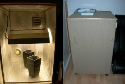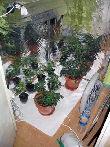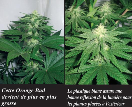 Assez parlé, il faut se mettre au travail et construire l’espace de culture. Il ne faut pas grand chose pour cela: un mètre carré suffit et tout le monde a bien ça que ce soit dans le grenier, dans la cave ou dans une chambre d’ami. Ce qu’il nous faut, c’est: une agrafeuse pour le bois, une scie, du plastique blanc et noir, un foret, des vis, des ciseaux, quelques planches de bois et un mètre carré. Nous allons construire un écran autour de l’espace de culture. Si que vous n’utiliser qu’un seul mètre carré dans une grande pièce, il faut séparer l’espace de culture du reste de la pièce qui peut encore servir à autre chose.Si vous ne faites pas cela, toute la pièce sentira quand les plantes seront en fleur. Avec un écran, la lumière des lampes sera pleinement utilisée et c’est là le plus grand avantage. La lumière que reçoit une plante va fortement déterminer le succès de la récolte. En construisant un écran autour du mètre carré et en le recouvrant de plastique blanc réfléchissant, vous garderez la lumière dans l’espace et sur vos plantes. Si vous ne le faites pas, la lumière va se disperser dans toute la pièce et vous en perdrez une grande partie. Vous assurer que les surfaces autour des plantes soient faites de plastique blanc réfléchissant est la meilleure façon de grossir la récolte. Je ne connais rien de moins cher ni de plus facile. Mylar est le meilleur produit sur le marché actuellement pour réfléchir la lumière sur vos plantes. C’est un peu plus cher que le plastique noir et blanc mais réfléchi jusqu’à 99% de la lumière que donnent vos lampes sur les plantes. Il est très important que votre espace de culture ait des murs réfléchissants que ce soit des murs blancs ou du plastique suspendu ne fait pas de différence. La construction d’un écran ne prend qu’une demi-heure si vous avez tout le matériel nécessaire sous la main. On coupe huit morceaux de bois d’environ 1,20 m de long et six d’environ 1,70 m. Cette longueur (1,70 m) correspond à la hauteur du plafond de ma cave. La longueur que vous choisissez est de préférence un peu plus petite que la hauteur du local où se trouvera l’espace de culture. Si votre pièce mesure 2 mètres de haut alors coupez à une longueur d’environ 1,97 m. En résumé, enlever quelques centimètres à la hauteur de votre local. La première étape est très simple: On fait un cadre de bois en attachant deux morceaux de 1,20 m de large à deux morceaux de 1,70 m (dans mon cas) de haut. Cela va très vite avec un foret électrique. On fait un trou dans chaque morceau puis on les visse ensemble. Quand le cadre est bien fixé, on peut tendre le plastique dessus avec l’agrafeuse. Les excédents peuvent être coupés quand c’est fixé. Nous avons maintenant notre première paroi réfléchissante. A cela, nous devons attacher une paroi de plus, de la même façon, mais en utilisant seulement un morceau de 1,70 m. On utilise le morceau de 1,70m du cadre qu’on vient de faire et on y fixe deux morceaux de 1,20 m et un de 1,70 m. Puis à nouveau, tendre et agrafer le plastique et couper l’excédent. Nous avons maintenant deux côtés de l’écran attachés l’un à l’autre. Ainsi, on ne fait pas des parois qui pendent séparément.On fait la même chose de l’autre côté et construisons là aussi une paroi en la fixant au bois de la première paroi. On obtient alors trois surfaces réfléchissantes solidement attachées l’une à l’autre. Vous pouvez maintenant placer votre construction autour du mètre carré choisi pour votre culture.Comme vous pouvez le remarquer,les parois sont un peu plus grandes que l’espace de culture. C’est pour avoir de la place pour mettre le ventilateur. Pour terminer, on construit une paroi indépendante avec deux planches de 1,20m et deux de 1,70 m. On la place contre l’ouverture de la boîte à trois parois et l’espace de culture est complètement scellé. Tout ce qu’il vous reste à faire est d’ouvrir la paroi porte pour surveiller et soigner vos plantes. La lumière des lampes reste de cette façon dans l’espace et vous verrez la différence que cela fait quand vous récolterez. L’odeur des plantes est également conservée à l’intérieur et peut être facilement supprimée à l’aide d’une pompe comportant un filtre. Le reste du local peut ainsi être utilisé à d’autres fins. Les cultivateurs créatifs peuvent eux-mêmes faire un véritable bijou de leur espace de culture.