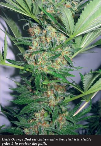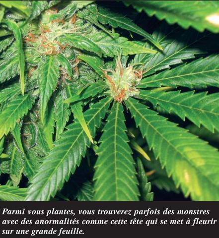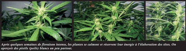 Par cette observation des calices, il est possible de déterminer à un stade relativement précoce quelles sont les plantes mâles et de les arracher pour laisser plus de place et de ressources au développement des femelles. Il existe aussi des plantes de cannabis qui portent à la fois des fleurs mâles et des fleurs femelles et que l’on appelle hermaphrodites . Parmi ces (fausses) hermaphrodites, on distingue trois cas: certaines plantes ont 90% de fleurs mâles et seulement 10% de fleurs femelles, d’autres ont 90% de fleurs femelles et 10% de fleurs mâles et d’autres encore ont 50 /50. Pour celles dont 90% des fleurs sont femelles, on peut se contenter de retirer les fleurs mâles à la main et procéder par la suite à une récolte en bonne et due forme . Si toutefois on décidait de garder les fleurs mâles de cette  hermaphrodite” à 90% femelle, on pourrait par la suite récolter leur pollen pour fertiliser des fleurs femelles dont les graines seraient alors pratiquement toutes femelles. Comment les têtes se forment-elles et quelles sont les parties fumables de la plante? Pour bien comprendre comment une tête se forme sur la plante; comment d’un bourgeon floral, elle devient un produit qui se fume, rien ne vaut une expérience pratique. Une description théorique du processus d’élaboration d’une fleur femelle ne vous en dira pas très long tandis que l’observation de ce phénomène se déroulant sous vos propres yeux sera très instructive. La plante femelle fabrique de nombreux pistils blancs qui émergent de petits bourgeons et plus la floraison progresse, plus les bourgeons floraux se multiplient et deviennent gros. Souvent les bourgeons finissent serrés les uns contre les autres donnant l’impression visuelle d’une seule et même énorme tête. Lorsque la floraison tire à sa fin, les têtes interrompent leur croissance et les fils blancs prennent une coloration plus foncée. Quand près de 80% des pistils sont devenus marrons, il est temps de récolter. Sur un pied de cannabis, les seules parties qui se fument habituellement sont les têtes. Une fois récoltées, ces têtes sont entreposées à l’abri de la lumière et de la chaleur (entre 10 et 20°C) dans un endroit où elles peuvent tranquillement sécher et  accomplir un processus de “conversion” dont résultent les substances qui procurent l’ivresse cannabique. Pour cette raison, il est important de laisser le temps à l’herbe de sécher correctement sans quoi l’ivresse ne sera pas optimum. Les petites feuilles que l’on taille lors de la manucure se fument aussi mais n’ont pas aussi bon goût que les têtes. Il vaut mieux en faire du haschisch mais nous en reparlerons dans un futur article.