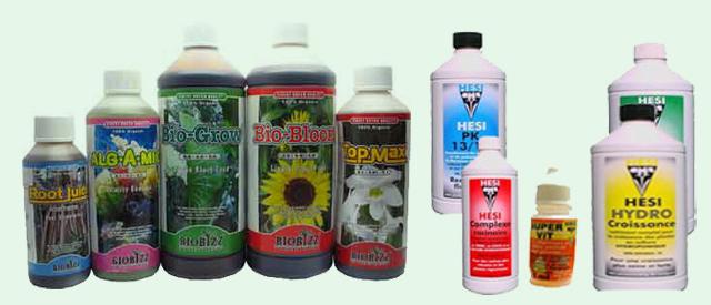 Après quelques temps, il va falloir commencer à nourrir les plantes pour les aider dans leur croissance rapide sous les lampes. Plus la terre dans laquelle vous cultivez est bonne  (si elle est riche en éléments nutritifs), plus longtemps vous pourrez attendre avant d’y ajouter les premiers compléments. Mais il est tout de même conseillé de donner des engrais de temps à autre même à des plantes qui poussent dans un mélange pré-fertilisé. En donnant de la nourriture de temps en temps, vous vous assurez que l’environnement ne sera pas épuisé soudainement. Vous remplissez le mélange constamment. Dans des circonstances normales, un bon mélange de terre aura besoin de suppléments après environ trois semaines de croissance en son sein. Mais en y ajoutant des nutriments régulièrement, il faudra cinq à six semaines avant qu’il ne soit épuisé. Cela réduira les problèmes car quand la terre s’épuise complètement, il faut lui apporter une grande quantité d’engrais liquides. Cela peut poser un problème aux cultivateurs moins expérimentés qui ne connaissent pas la quantité dont la plante à besoin et en un rien de temps  on se retrouve avec des plantes toutes jaunes.