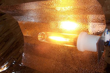 Sans lumière, nos petites plantes ne poussent pas et nous avons donc besoin d’une lampe pour la croissance et la floraison. Il existe de nombreuses sortes de lampes. Le mieux est de choisir celles au sodium. C’est l’éclairage qui détermine la récolte finale. Plus on a de lumière, plus la plante produit. Pour obtenir une récolte suffisante et de bonne qualité, nous avons besoin d’une lampe sodium de 400 ou de 600 watts. Celles-ci conviennent bien à notre objectif et utilisent relativement peu d’énergie. Prenez le matériel le moins cher ou le plus simple pour commencer. Les lampes avec refroidissement d’air ou d’eau viendront plus tard. Une lampe de 400 watts peut procurer 200 grammes et une de 600 watts, 300 grammes. En tant que débutant, c’est ce que vous pouvez espérer. Si vous obtenez plus, considérez-vous comme chanceux.